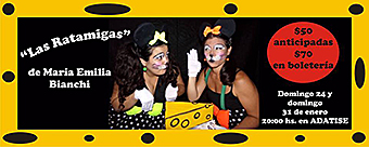 Este domingo 24 en la Asociación de Actividades Teatrales de Santiago se estrenará la obra “Las Ratamigas”. Se trata de un espectáculo infantil protagonizado por Paola Morales como Ratita y María Emilia Bianchi como Rata Marta, del grupo de teatro «Barrilete» y «A media cuadra», en sonido trabaja Marcelo Ramirez y en vestuario María Herrera.