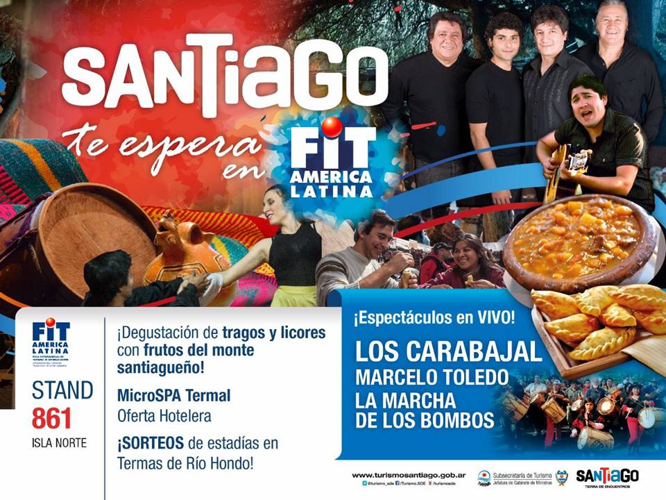La Madre de Ciudades estará presente este Fin de Semana en la feria Internacional del Turismo, (FIT) En la Rural Buenos Aires, acompañados de una hermosa propuesta Gastronomica, musica, arte, Spa, licores Santiagueños, Marcha de los Bombos y mucho mas, del 28 al 31 de Octubre en Palermo. Imperdible