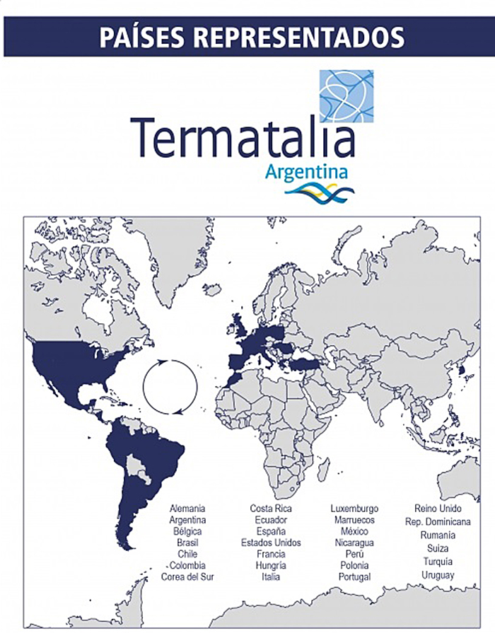 América Latina estará representada en la feria por la Argentina (que ejerce de país anfitrión y es uno de los protagonistas de esta cita estando presentes casi todas sus provincias termales), Brasil, Chile, Colombia, Costa Rica, Ecuador, México, Nicaragua, Perú y Uruguay. Europa estará presente a través de la presencia de destinos, entidades públicas, empresas y profesionales de Alemania, Bélgica, España, Francia, Hungría, Italia, Luxemburgo, Polonia, Portugal, Reino Unido, Rumanía y Suiza.